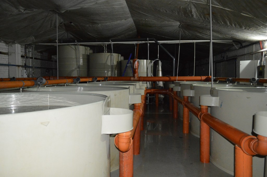 After they arrive the glass eels are kept in a quarantine station using a policy adopted from the Swedish best practice. It is kept as short as possible to aviod altering the sex ratios and the full gene pool is used. All juvenilles are marked to enable the efficacy of stocking to be measured against natural stocking.